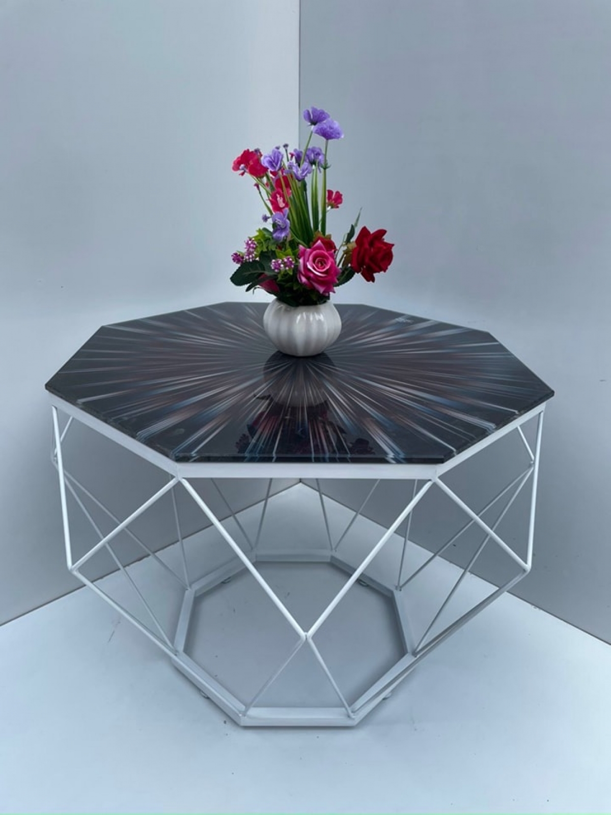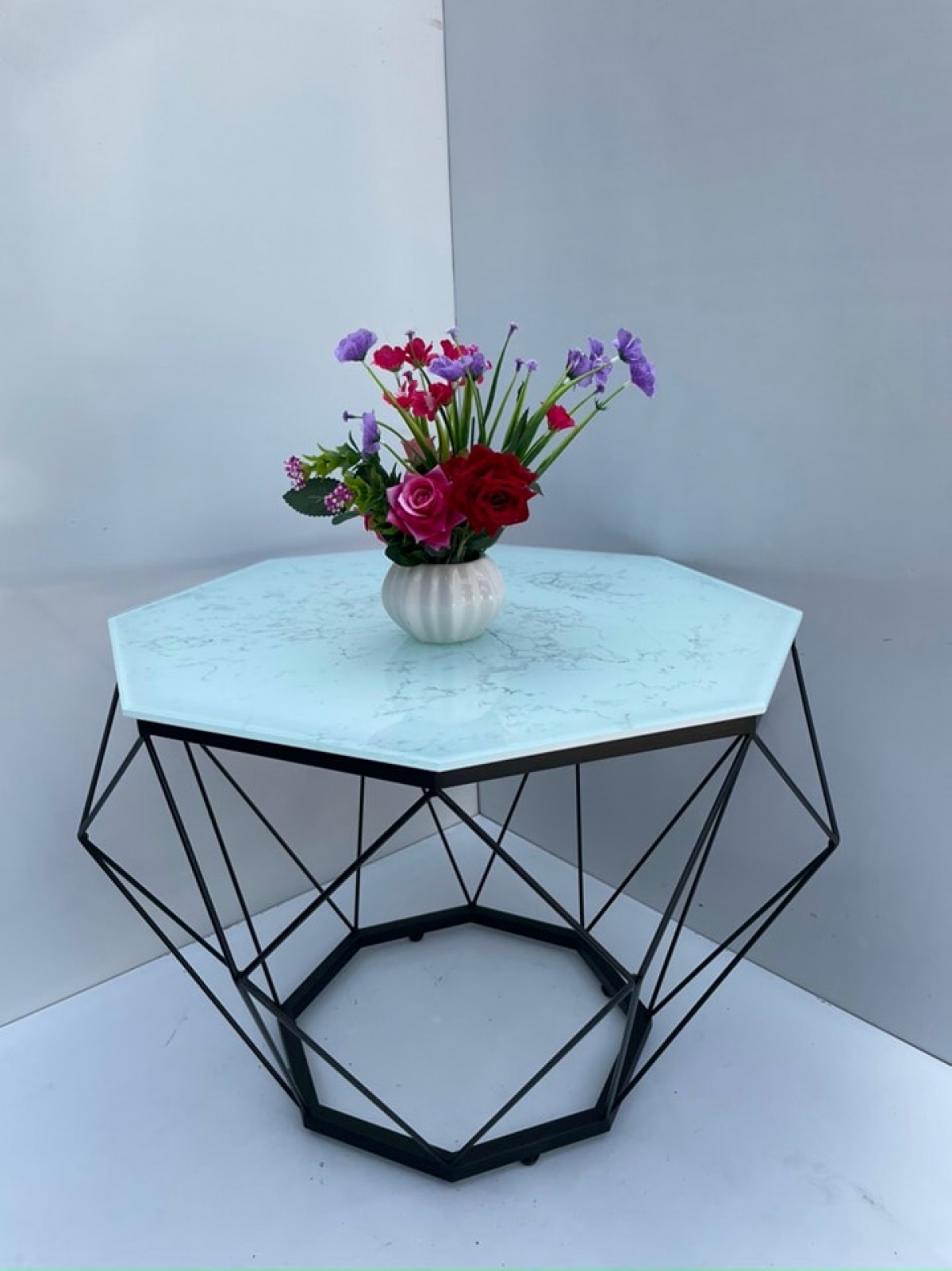 - Thiết kế hiện đại: Với khung sắt hình lục giác cùng kính cường lực, chiếc bàn tạo nên sự thanh lịch và cuốn hút cho không gian.