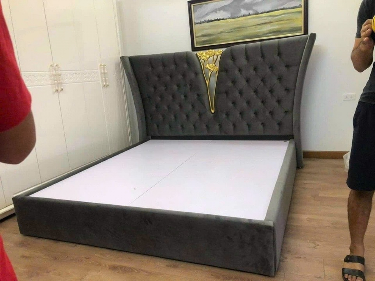- Tạm biệt những mẫu giường gỗ nhàm chán, thô cứng thay thế vào đó là mẫu giường bọc vải nỉ chinh phục mọi không gian sống, thuyết phục những khách hàng khó tính nhất. Bởi mẫu thiết kế tinh tế vô cùng sang trọng kết hợp cùng những tone màu nổi bật tạo nên nét cá tính riêng cho gia chủ. Sự kết hợp này sẽ khéo léo trong việc cách điệu những chi tiết cong bao quanh khung giường khiến chiếc giường cuốn hút hơn, những múi rút sâu cùng chất liệu nỉ nhung cao cấp tăng thêm vẻ đẹp cuốn hút và cổ điển.