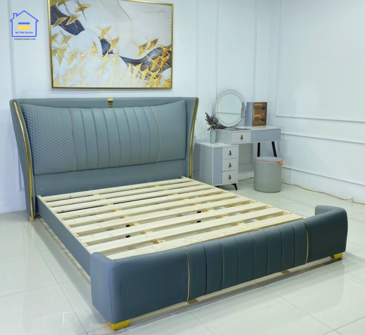 - Chân giường mạ inox cứng cáp, chắc chắn.