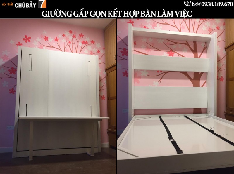Thiết kế thông minh giúp tận dụng tối đa không gian, đặc biệt phù hợp với những căn hộ nhỏ hoặc phòng đa năng. Khi không sử dụng giường, bạn có thể gập gọn để tạo thêm không gian cho các hoạt động khác mà vẫn giữ nguyên bàn học sẵn sàng cho việc làm việc hoặc học tập.