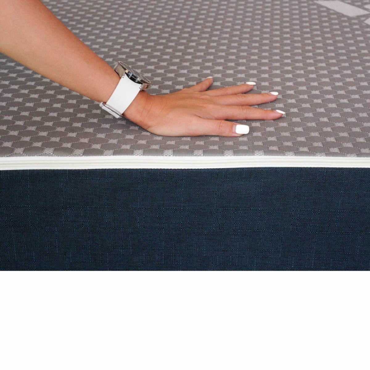 Lớp áo nệm được làm gấm thun xốp đảm bảo đem lại sự thấm hút tốt nhất cho người nằm, giúp cho chiếc nệm luôn được khô thoáng và giúp cho người nằm thoải mái có giấc ngủ ngon nhất.