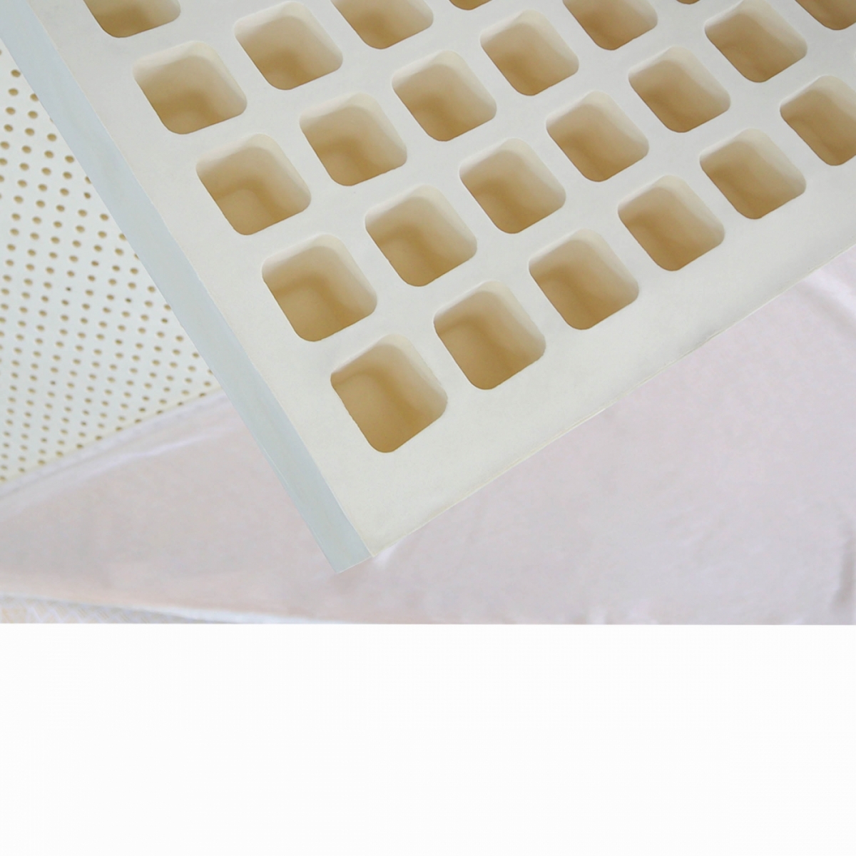 Chất liệu cao su thiên nhiên có đặc tính kháng khuẩn tự nhiên, ngăn ngừa sự phát triển của vi khuẩn và nấm mốc, giúp bảo vệ sức khỏe người sử dụng. Đồng thời, nệm được thiết kế với các lỗ thông hơi trên bề mặt, giúp lưu thông không khí hiệu quả, tạo cảm giác thoáng mát suốt đêm.